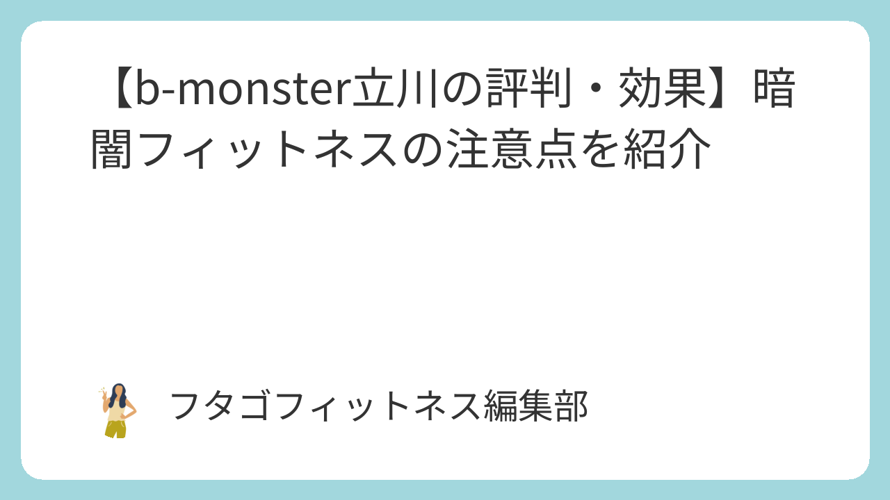 このページでは、暗闇フィットネススタジオb-monster(ビーモンスター)立川スタジオの特徴・評判などを、50社以上フィットネススタジオを取材してきた私が経験をもとにわかりやすくまとめている記事です。