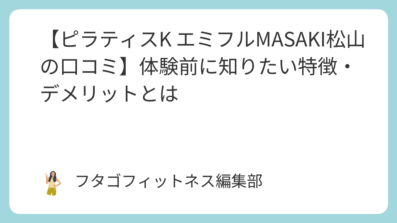 マシンピラティス専門店【ピラティスK エミフルMASAKI松山店】の料金や口コミなどの特徴を 50社以上フィットネススタジオを取材している私が、経験をもとにくわしくまとめています。