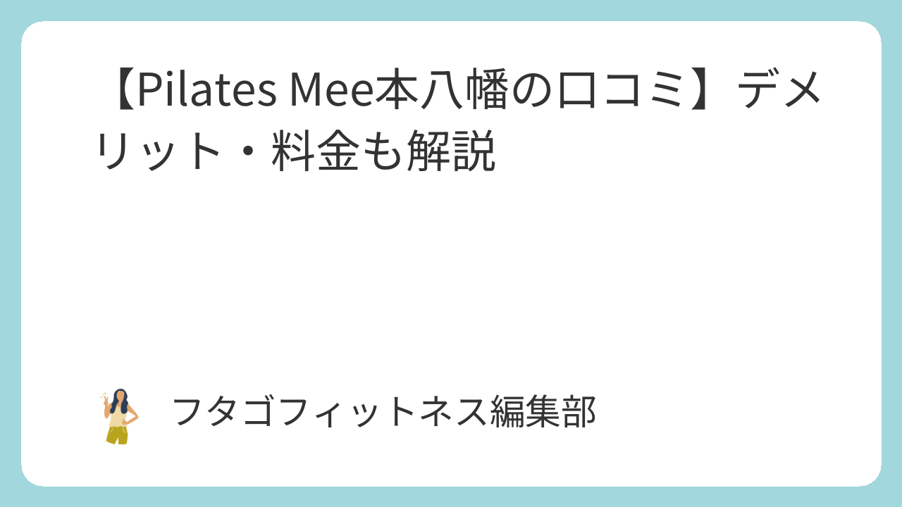 女性専用のセミパーソナルスタジオ「Pilates Mee(ピラティスミー)本八幡店」の口コミや料金などの特徴について、年間50社以上フィットネススタジオを取材している私が詳しくまとめています。