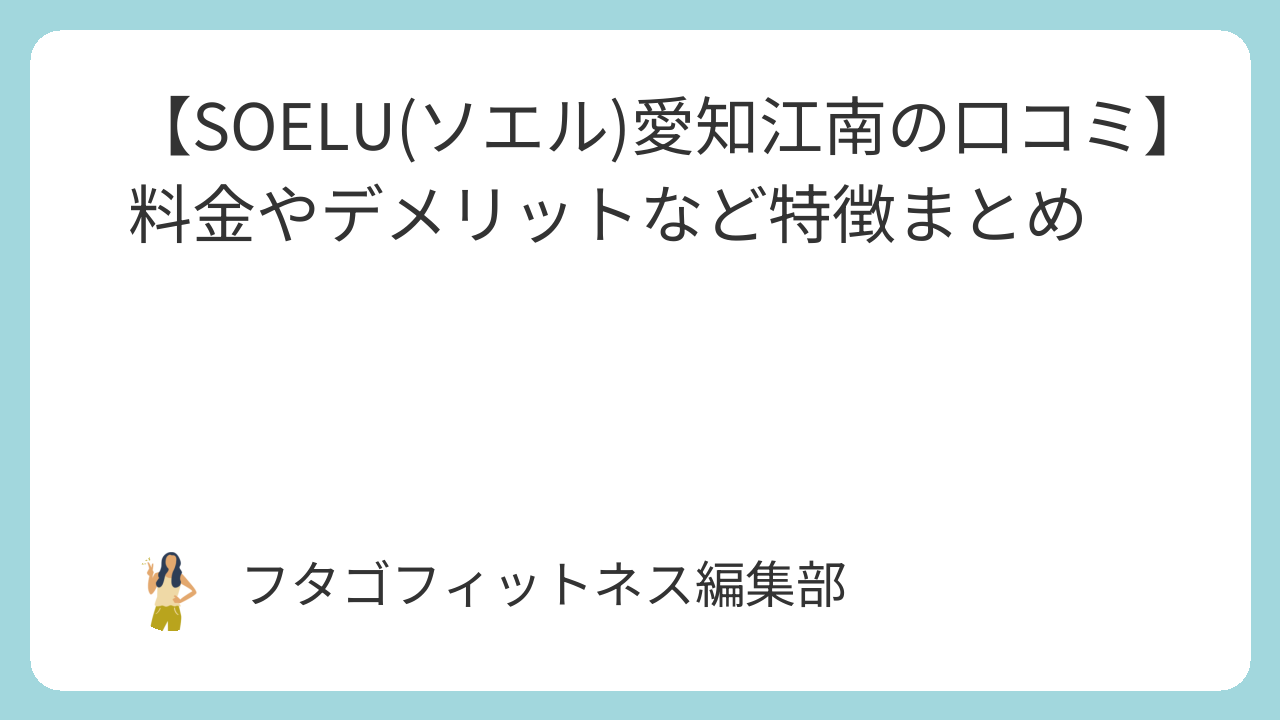 このページでは、フィットネススタジオSOELU(ソエル)愛知江南店の評判や料金などの特徴を年間50社以上フィットネスを取材している私がわかりやすくまとめています。(以下 SOELU)