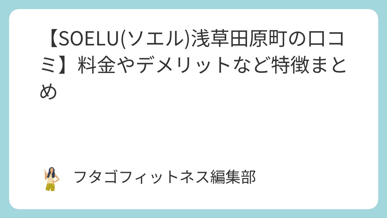 このページでは、フィットネススタジオSOELU(ソエル)浅草田原町店の評判や料金などの特徴を年間50社以上フィットネスを取材している私がわかりやすくまとめています。(以下 SOELU)