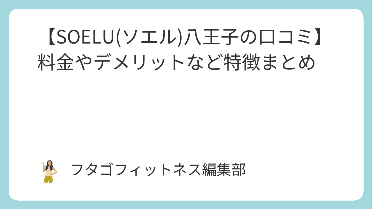 このページでは、フィットネススタジオSOELU(ソエル)八王子店の評判や料金などの特徴を年間50社以上フィットネスを取材している私がわかりやすくまとめています。(以下 SOELU)
