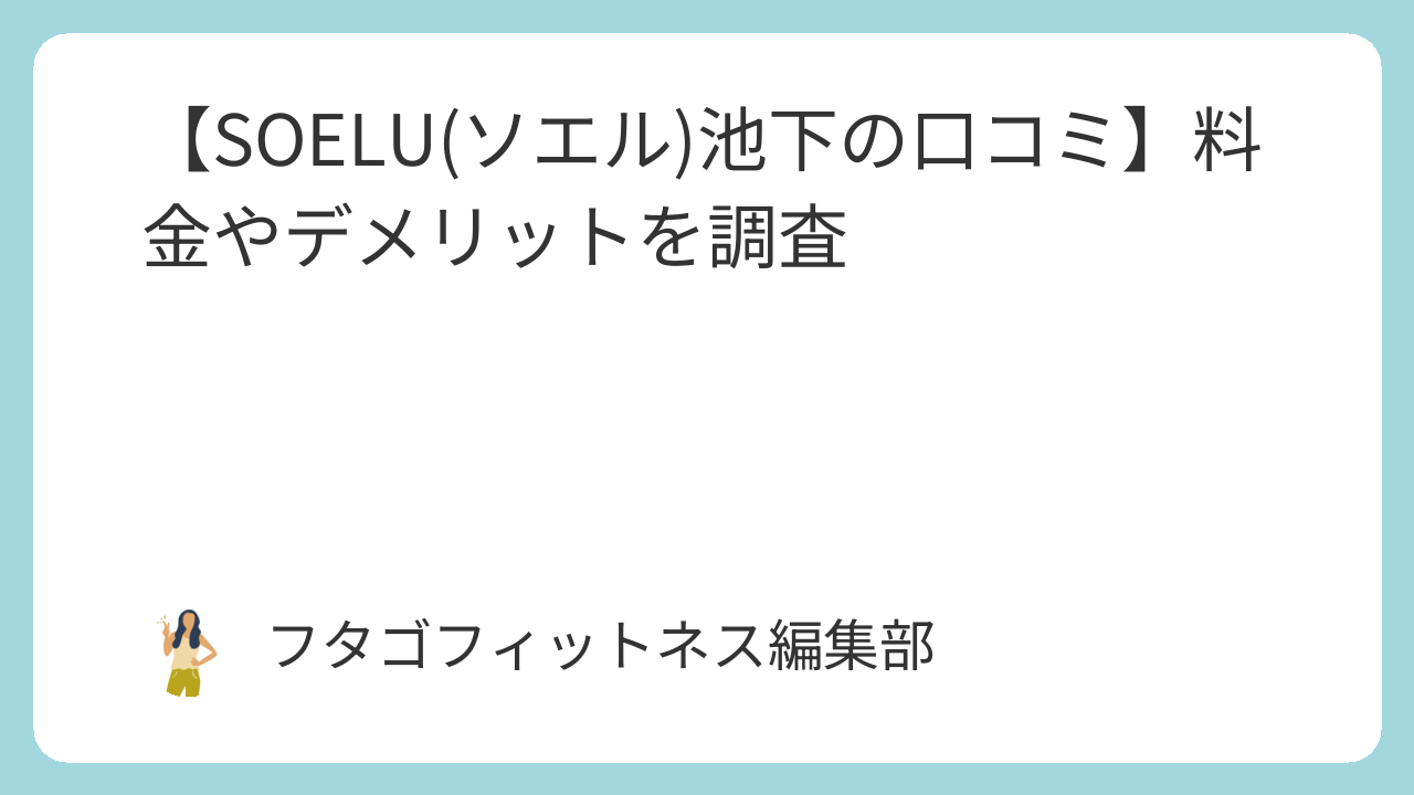 このページでは、フィットネススタジオSOELU(ソエル)池下店の評判や料金などの特徴を年間50社以上フィットネスを取材している私がわかりやすくまとめています。(以下 SOELU)
