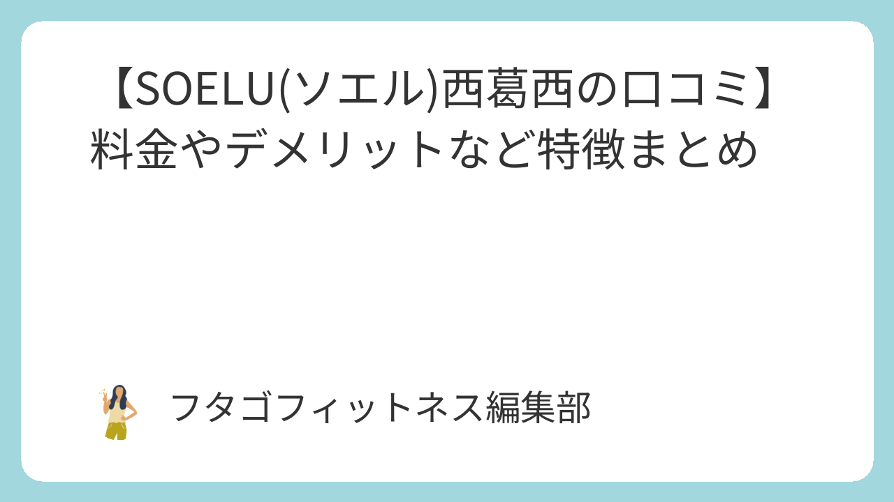 このページでは、フィットネススタジオSOELU(ソエル)西葛西店の評判や料金などの特徴を年間50社以上フィットネスを取材している私がわかりやすくまとめています。(以下 SOELU)