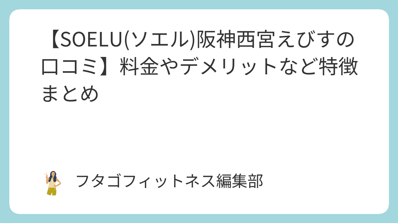 このページでは、フィットネススタジオSOELU(ソエル)阪神西宮えびす店の評判や料金などの特徴を年間50社以上フィットネスを取材している私がわかりやすくまとめています。(以下 SOELU)