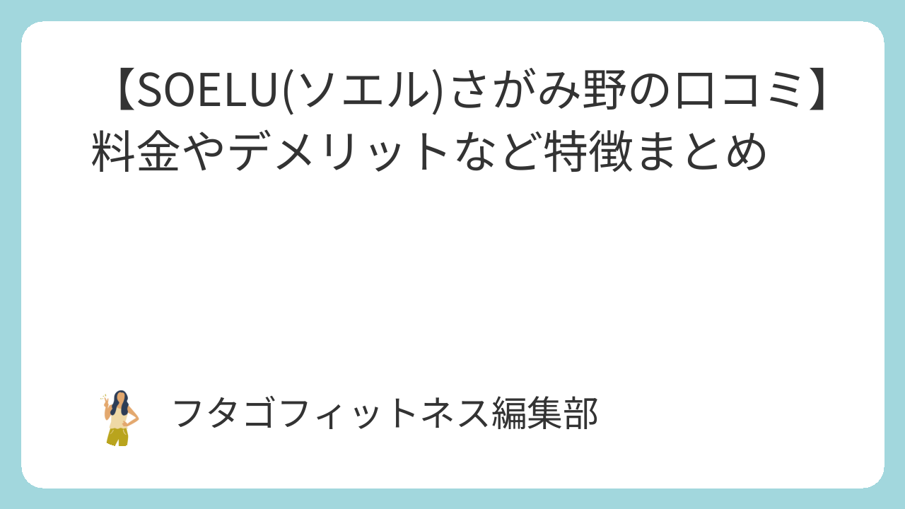 このページでは、フィットネススタジオSOELU(ソエル)さがみ野店の評判や料金などの特徴を年間50社以上フィットネスを取材している私がわかりやすくまとめています。(以下 SOELU)