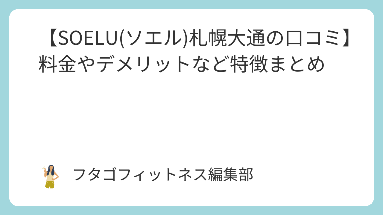 このページでは、フィットネススタジオSOELU(ソエル)札幌大通店の評判や料金などの特徴を年間50社以上フィットネスを取材している私がわかりやすくまとめています。(以下 SOELU)
