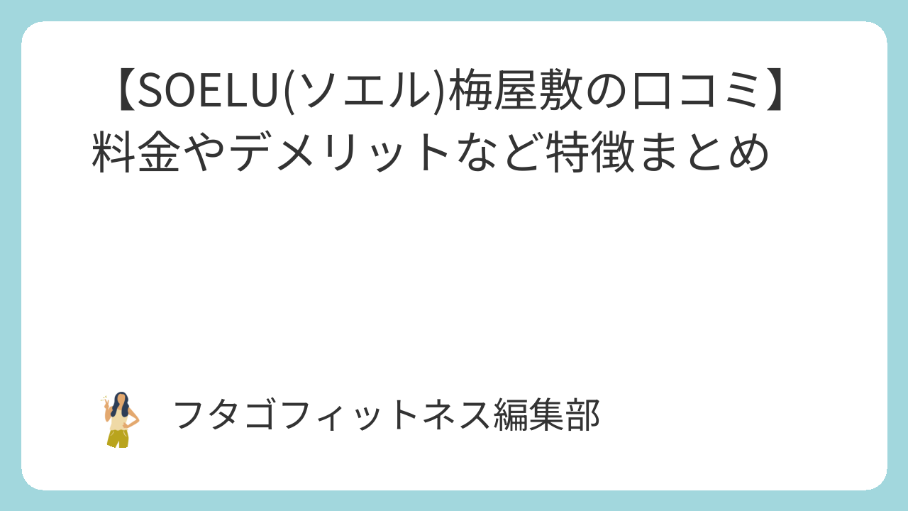 このページでは、フィットネススタジオSOELU(ソエル)梅屋敷店の評判や料金などの特徴を年間50社以上フィットネスを取材している私がわかりやすくまとめています。(以下 SOELU)