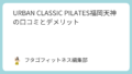 ピラティススタジオURBAN CLASSIC PILATES(アーバンクラシックピラティス)瑞穂店の口コミや料金などの特徴について、年間50社以上フィットネススタジオを取材している私が詳しくまとめています